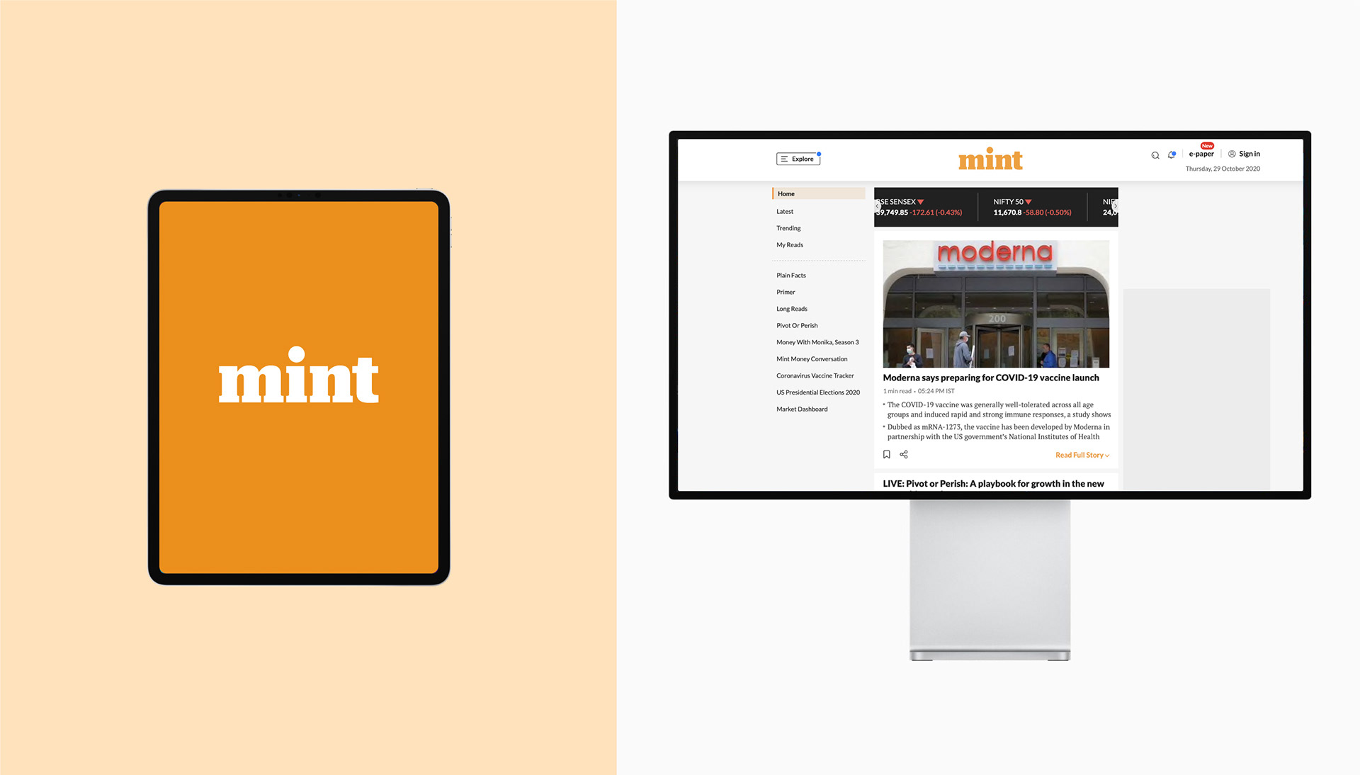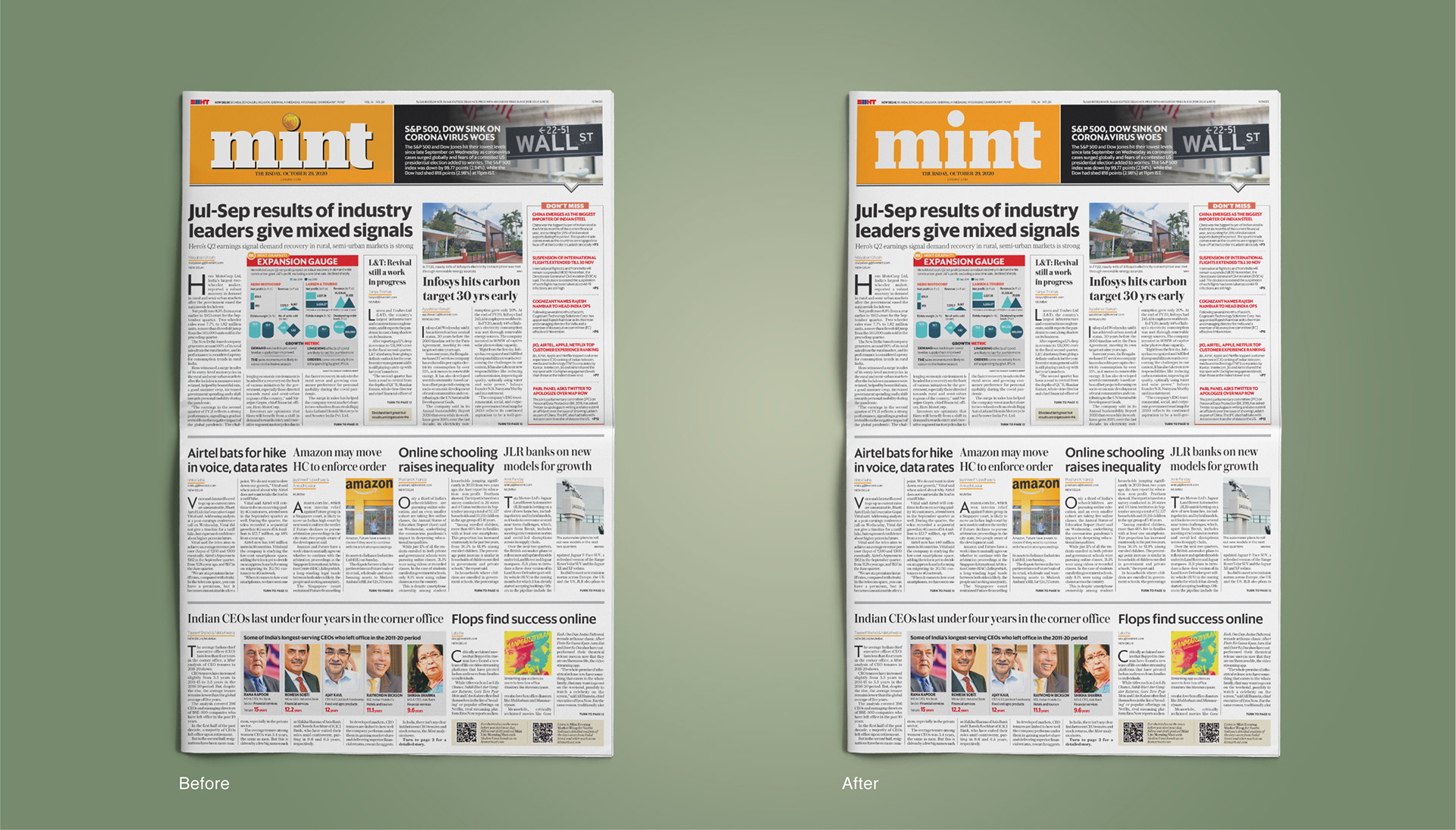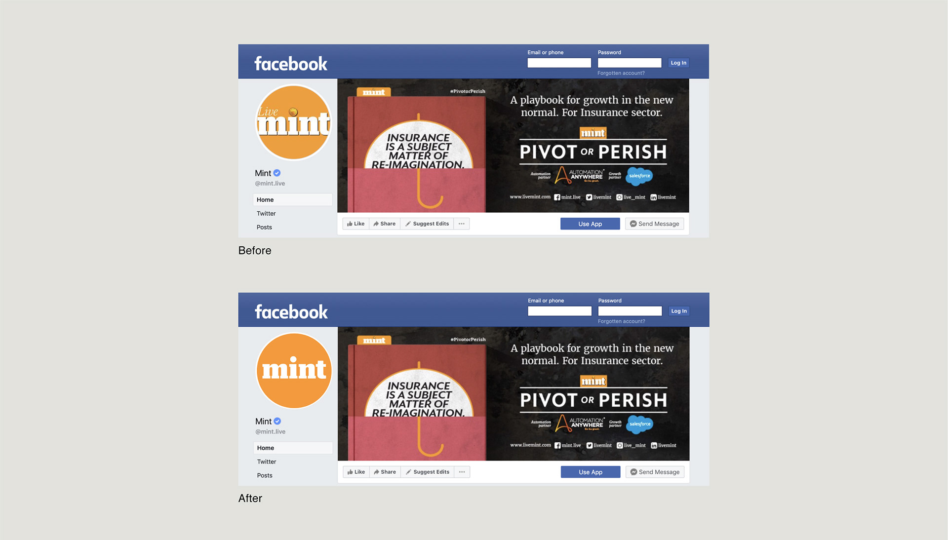 Mint became the symbol of change, by undergoing one itself. We dropped the gold mint in the logo and cleaned up the shadow. Their digital version would carry the word ‘LIVE’ in the logo unit. We made sure to knock that off and brought in a clean version of the logo that sat consistently on both the platforms.